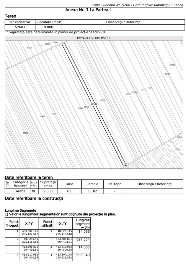Teren arabil Seaca, Mihaiesti, jud. Olt, incadrat de DC533 si DC572/2, 14 m deschidere DC533, 14 m deschidere DC572/2 si 698 m lungime.