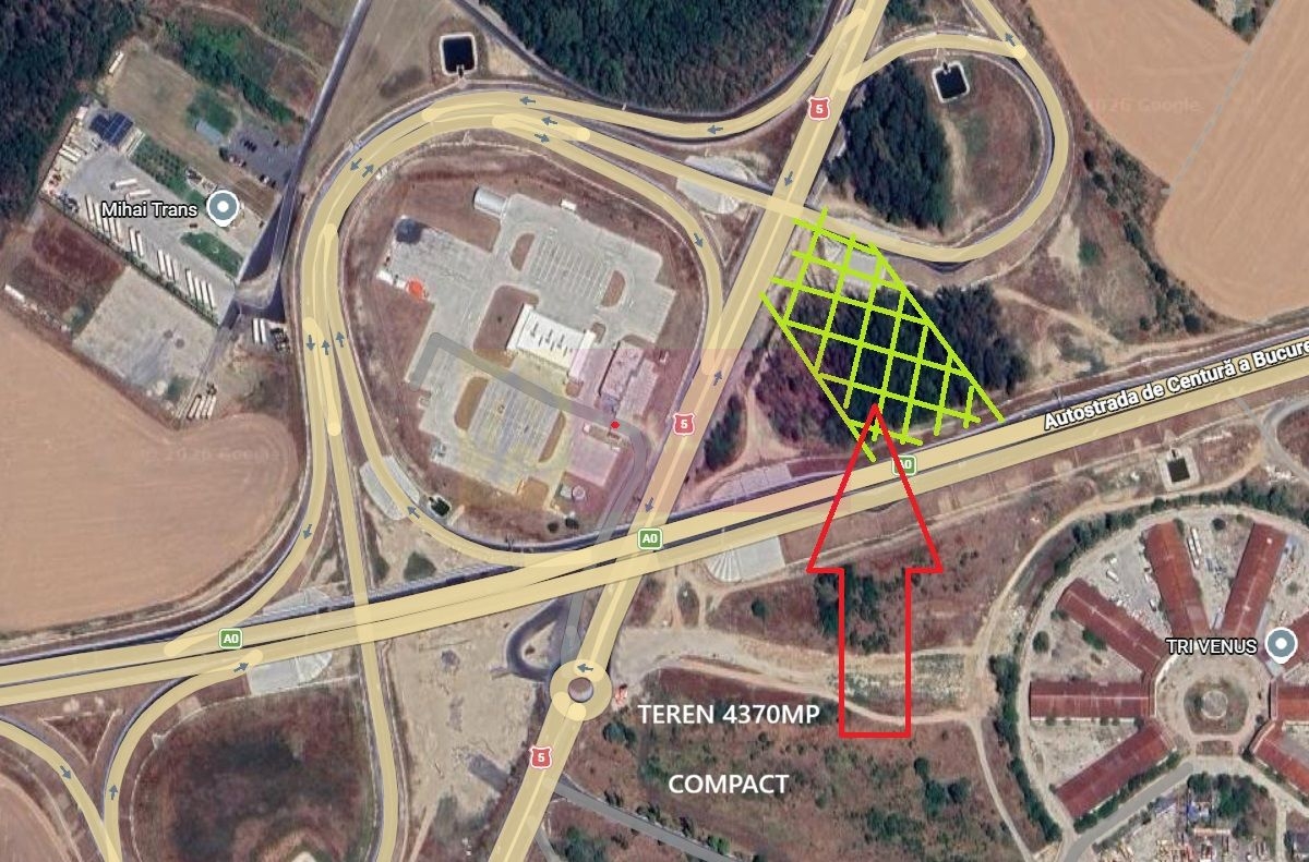 Va oferim posibilitatea de a achizitiona la pret bun un teren situat intre A0 - Centura secundara a capitalei (de viteza) si DN5 - Soseaua Giurgiului, un teren compact de 4370mp, cu front stradal de peste 30ml la drum de acces, avem o latura care se invecineaza direct cu DN5 - Soseaua Giurgiului. Terenul se afla in extravilanul localitatii 1 Decembrie si pe teren sunt arbori maturi, terenul face parte din palcul de padure de pe partea dreapta cum venim spre Bucuresti care a fost afectat de constructia A0. Amplasamentul este punctul forte al acestei proprietati. Pentru a edifica orice contructie pe acest teren sunt necesare aprobari de la CNAIR si trebuie facut PUZ ceea ce implica costuri suplimentare, deasemenea, terenul fiind in extravilan se va respecta procedura de preemtiune. Efortul insa merita! Terenul este foarte bine amplasat. Pentru mai multe detalii si programarea de vizionari nu ezitati sa contactati consultantul imobiliar. La vizionare se semneaza contractul de prestari servicii iar comisionul agentiei este de 3%+TVA din pretul final agreat la tranzactionare.