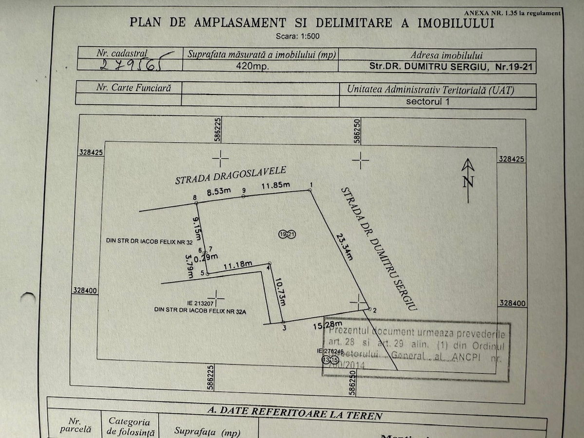 -Teren ultracentral de vanzare - in zona Piata Victoriei (vizavi de Spitalul Sanador) - suprafata 420 mp – Str. Dr. Dumitru Sergiu;