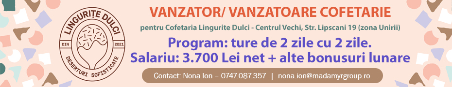 Angajam vanzatoare Cautam persoane serioase pentru magazin alimentar non-stop. Program in ture (zi noapte), 6 zile lucratoare 3 zile libere....