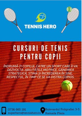 Tennis Hero îti ofera: Lectii tenis începatori Cursuri tenis adulti Cursuri tenis copii (avansati/performanta).